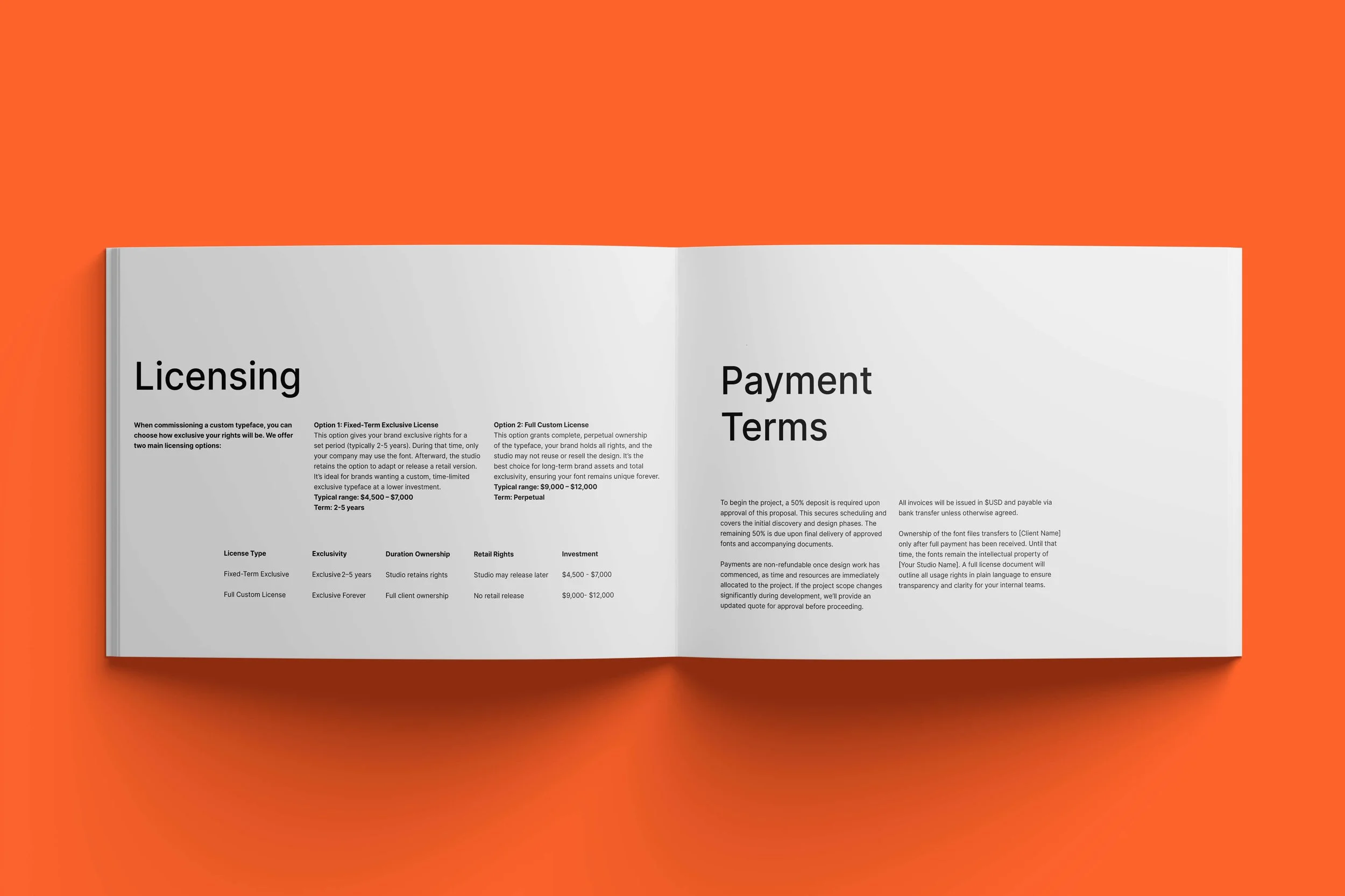 Everything you need to present, pitch, and onboard clients for custom fonts.